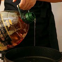 做法分解7:锅里倒入15克金龙鱼添加25%特级初榨橄榄油食用植物调和油