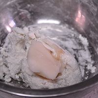 做法分解3:糯米粉中加入热水,边倒水边搅拌