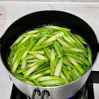 做法分解3:锅中水煮开后,加入少许花生油,倒入芦笋汆水一分钟