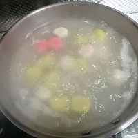 做法分解9:锅开下入汤圆,汤圆浮起来顶多再煮1分钟关火即可。
