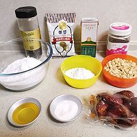【汤圆皮】,三象糯米粉200g,玉米淀粉40g,玉米油25g,牛奶250g,细砂糖20g,【馅料】,去核红枣80g,熟花生150g,熟黑芝麻30g,蜂蜜35g,椰蓉适量