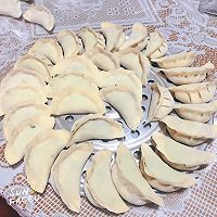 做法分解3:包饺子将适量的饺子馅包入饺子皮中