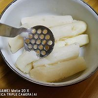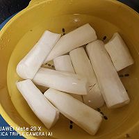 做法分解2:带一次性手套削皮,清水洗净,切段