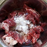 做法分解1:牛肉切小块,加海盐,黑胡椒,料酒,淀粉,也可以加个蛋清,抓匀腌制一会