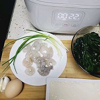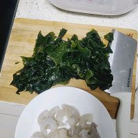 做法分解1:准备食材,虾仁15只左右去除虾线,少许裙带菜泡发