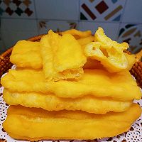 做法分解9:油温五成热下入做好的油条,油条下锅前慢慢用手拉长,炸的过程中,反复用筷子翻动,炸至金黄酥脆捞出
