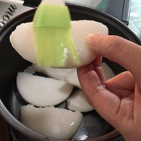 做法分解1:准备好食用油,糍粑清洗干净对半掰开(糍粑个小也可保留一个完整的)
