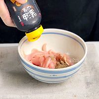 做法分解4:一块鸡胸肉切细条装入碗中,加入适量胡椒粉、挤入小鲜侣调味汁、酱油心生、料酒,抓拌均匀腌制一会儿;