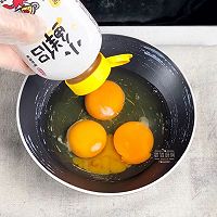 做法分解5:碗中打入3个鸡蛋,挤入小鲜侣调味汁充分搅打均匀(能起到去腥提鲜的作用);