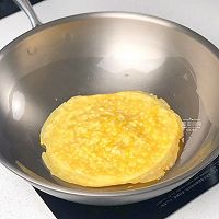做法分解6:鹅妈妈钛晶锅预热倒入适量植物油,倒入蛋液煎成蛋皮且熟透;