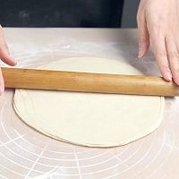 做法分解12:每个剂子擀开擀薄擀成圆饼状(大约10厘米左右的大小);