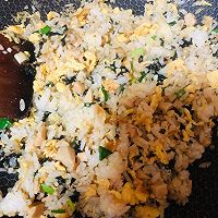 做法分解8:倒入火腿丁、小葱段翻炒再加入紫菜翻炒均匀。