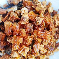 做法分解2:准备一点小鱼干。这个是春节时在老家网的小石斑鱼,自己烘干的,特别好吃。