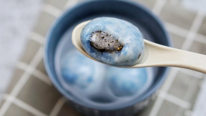 最近迷恋上蓝色系美食啦~汤圆做成蓝白相间的就是那中国风青花瓷的意思!但是,为什么我越看越觉得像个地球呢ˉ\_(ツ)_/ˉ经过试验蓝白皮比例1:2,成品更接近青花瓷蓝白皮比例1:1,成品更接近地球,或者,蓝天白云本菜谱可以得到18个巧克力汤圆和12个黑芝麻汤圆,食材都分类啦~其中巧克力汤圆比较小(25克一个),黑芝麻汤圆比较大(35克一个)如果看起来麻烦,只需要记住:①糯米团就是糯米粉+开水+椰油(糯米粉重量10%)②如果想要蓝色的糯米团,可以直接开水煮蝶豆花,也可以糯米粉中加蝶豆花粉,其他颜色同理~加果蔬粉或者食用色素都可以③皮馅比2:1,有x克馅料就准备2x克的糯米团。馅料分成几个都行,称一下重量,然后糯米团就分成双倍馅料重量即可。例如:黑芝麻汤圆中,我将馅料分成12克每个,因此糯米皮需要24克每个。而巧克力汤圆中,我将馅料分成8.5克每个,糯米皮约为17克每个④糯米粉吸水程度不同,水量要灵活调整,当然这也会导致同等重量糯米粉,每个人得到的糯米团重量却不同~那么如果你剩下了馅料,可以做包子面包小馅儿饼,剩下了糯米团就团成小圆子煮进酒酿里呀~
