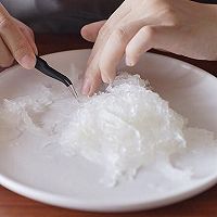 做法分解2:用镊子挑出燕窝中的绒毛和其他杂质,洗好备用。