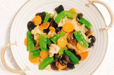 做法分解6:杏鲍菇和鸡胸肉全部切成丝,炒鸡胸肉的时候可以放一勺蚝油