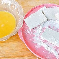 做法分解2:豆腐片裹上一层淀粉,再挂上一层蛋液