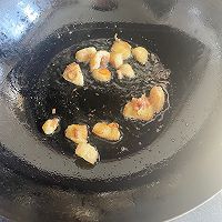 做法分解2:鹅块汆烫一下放一旁备用,铁锅里放鹅油冰油炒化