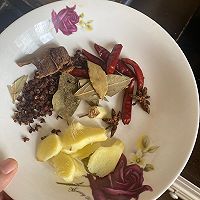 做法分解4:准备香料:花椒,香叶,八角,桂皮,干辣椒,姜片,一起放入锅内