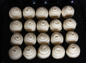 8、 烤箱提前预热,180度,中层,上下火,烤25分钟,在烤至差5分钟出炉时把烤盘拿出来,在面包上刷上一层蜂蜜水,再次放到烤箱中再烤5分钟,中间上色过深的话盖上一层锡纸,烤好的面取出放凉,倒扣出来就可以了。
