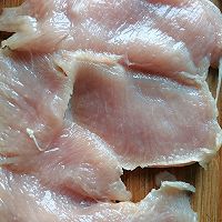 做法分解1:鸡胸肉中间切三片。可切断可不切断。