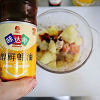 做法分解2:鸡胸肉切块,熟土豆去皮掰开一同放入搅拌机中,加盐,糖,白胡椒粉,黑胡椒碎2克,蛋清,玉米淀粉2勺,醇鲜蚝油1勺