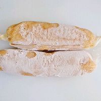 做法分解5:用保鲜膜把肉泥放进去,卷成圆长形,放入冰箱冷冻6个小时定型