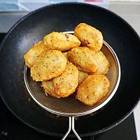 1.鸡肉和土豆,淀粉,蛋清一定要搅打成泥,发粘性,肉泥不能太稀,要干,粘2.炸鸡块用中火,注意翻面,防止上色不均匀来自阳春白雪小食光的作品。