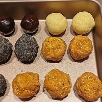 做法分解4:咸蛋黄肉松馅:咸蛋黄用均质机(料理机)打碎,加入肉松和白芝麻混合,加入玉米油(可用泡咸蛋黄的玉米油)捏成团即可。
