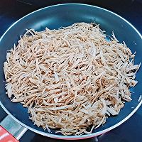 做法分解4:平底不粘锅放少量油,把鸡胸肉丝倒入翻炒,加入适量蚝油,酱油,砂糖一起翻炒,炒得越干越香。