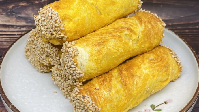 铁棍山药1根,蜜豆30克,椰浆25克,原味吐司8~9片,鸡蛋1个,白砂糖20克,白芝麻适量