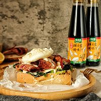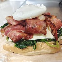 做法分解14:再铺上煎好的培根,放上水波蛋;