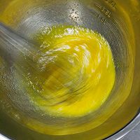 做法分解3:鸡蛋液150克,细砂糖水一放进来盆子隔着50度的温水不停的搅拌,直到蛋液升温到40度