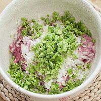 做法分解6:接着倒入1个鸡蛋,15g玉米淀粉(生粉),2g生抽和1g盐,用筷子顺一个方向搅拌至肉糜吃水上劲。