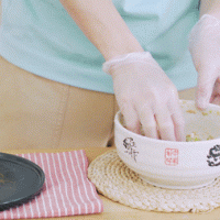 做法分解7:戴上一次性手套,取适量肉糜搓成丸子。