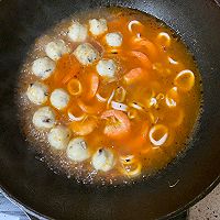 做法分解4:再放入鱼丸、虾、鱿鱼煮熟后捞起放入容器。在把鱼片一片一片放入锅里煮熟。