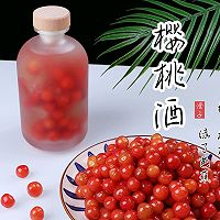 做法分解3:泡酒瓶倒点白酒涮洗一下,樱桃用厨房纸吸干水分
