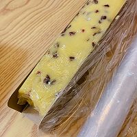 做法分解7:第六步:放入冰箱冷藏约40分钟,成型后拿出来切成0.5cm左右的厚度。