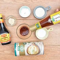 做法分解2:取一小碗加入盐,糖,“美极”鲜味汁,“太太乐原味鲜”鸡鲜调味料,水淀粉,胡椒粉,“太太乐”芝麻香油调成碗汁备用