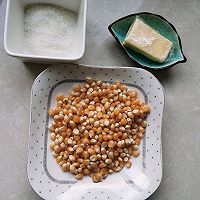 做法分解1:准备好所有的食材,爆米花玉米粒100克黄油只用了10克(图中有30克)