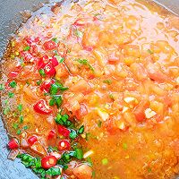 做法分解9:锅中烧油,加入西红柿丁炒成西红柿酱汁。