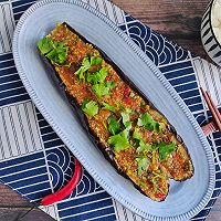 刚烤出来的茄子,从中间切的时候一定要小心别烫了手。蒜要稍微多一点才好吃!来自馨心杨的作品。