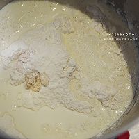 做法分解2:所有材料除黄油以外放入厨师机,慢速1档2分钟揉面成团,再转高速4档7分钟,揉面至拓展阶段