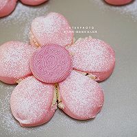 做法分解16:在花瓣的中心,挤上一点柠檬奶油酱,盖上一块奥利奥樱花曲奇