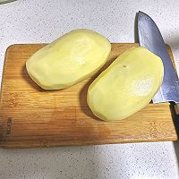 土豆2个,牛奶20毫升,盐1小勺,黑胡椒适量,淀粉1勺,太太乐鲜鸡汁1勺,耗油1勺,凉水适量
