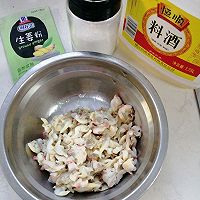 做法分解2:准备去腥腌制放入味好美生姜粉2克,盐巴1克,料酒5克,抓捏均匀静置十几分钟入味