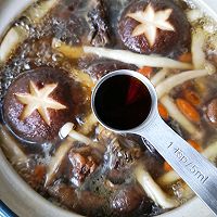做法分解7:将泡过菌菇的水澄清后倒入锅中。