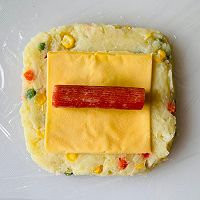 做法分解9:蛋皮奶香十足,土豆泥软绵夹着芝士蟹***,一口下去超级满足