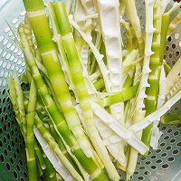 小笋500克,腊肉1小块,小米椒8个,红尖椒4个,蒜头7颗,盐适量,蒸鱼油2汤匙,姜5片,韭菜适量,鸡汁适量
