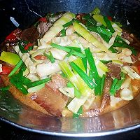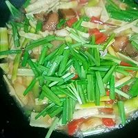 做法分解10:加韭菜炒几下,加少量的开水煮两分钟